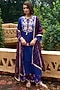 Featuring a royal blue kurta in silk base with zardosi work and embroidery. It is paired with pants and a leheriya organza dupatta. Accentuate it with statement jewellery and heels for a wedding or sangeet ceremony.
