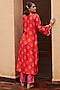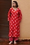 Featuring a scarlet kurta in silk base with dori embroidery. It is paired with pants. Accentuate it with earrings and heels for a festive occasion or family gathering.