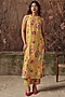 Featuring a sunshine yellow sleeveless straight kurta in silk base with print and sequins embellishment. It is paired with narrow trousers. Accentuate it with statement earrings and heels for festive ceremonies.