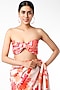 Featuring a white and orange saree in bemberg silk base with floral print. It is paired with a blouse. Accentuate it with statement earrings and heels for a wedding, sangeet or engagement ceremonies.