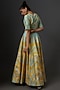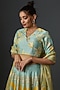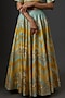 Featuring a yellow lehenga in blended silk base with floral print. It is paired with a matching embroidered blouse and a dupatta.