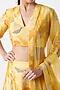 Featuring a yellow lehenga in bemberg silk base with floral print. It is paired with a matching embroidered blouse and an organza dupatta.