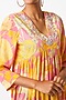 Featuring a yellow maxi dress in bemberg crepe base with floral print and an embroidered neckline.