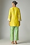 Featuring a yellow kurta in silk base with embroidery. It is paired with striped pants and a dupatta. Accentuate with statement jewellery and heels for a festive ceremony.