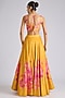 Featuring a pink and yellow lehenga in silk base with print and hand embroidery. It is paired with an embroidered blouse and a dupatta. Accentuate it with statement jewellery and heels for festive occasions, sangeet or wedding ceremonies.