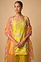 Featuring a yellow kurta in silk base with zari embroidery. It is paired with sharara pants and a dupatta. Accentuate it with statement earrings, a sleek braid and metallic heels, perfect for festive occasions or haldi ceremony.