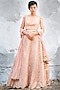 Featuring a peach lehenga with embroidery. It is paired with a matching blouse and a dupatta.