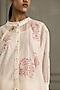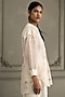 Featuring an ivory shirt in mul chanderi base with hand and machine embroidery, adorned with hand block print. It is paired with linen flared pants and a slip. Accentuate it with statement earrings and heels for festive gatherings, brunches, casual celebrations and travel outings.