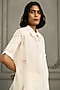 Featuring an ivory shirt in mul chanderi base with hand embroidery and hand block print. It is paired with linen flared pants and a slip. Accentuate it with statement earrings and heels for festive gatherings, brunches, casual celebrations and travel outings.