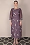 Featuring a lavender dress in bemberg base with cherry blossom print and thread machine embroidery. This contains only one piece.