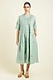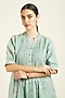 Featuring a mint dress in linen base with machine embroidery and hand block printing. It is paired with a slip. Accentuate it with statement earrings and heels for a casual wear.