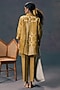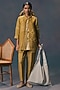 Featuring a moss green shirt in linen and organza base with print. It is paired with linen straight pants and a slip. Accentuate it with statement earrings and heels for a casual or office wear.