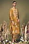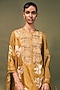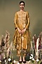 Featuring a moss green tunic in mulberry silk and organza base with discharge print and machine embroidery. It is paired with pants and a dupatta. Accentuate it with dangler earrings and heels for a festive occasion.