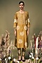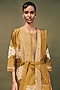 Featuring a moss green tunic in silk chanderi and organza base with discharge print and machine embroidery. It is paired with pants and a dupatta. Accentuate it with dangler earrings and heels for a festive occasion.