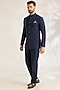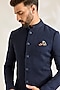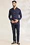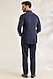 Featuring a navy blue bandhgala jacket in silk base. It is paired with a shirt and pants. Style it with mojaris for a festive occasion, wedding, or engagement ceremony, and complete the look with a statement brooch or pocket square along with a sleek watch for a polished finish.