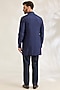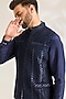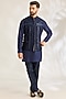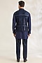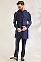 Featuring a navy blue bundi jacket in silk base. It is paired with a kurta and pants. Style it with mojaris for a festive occasion, wedding, or engagement ceremony, and complete the look with a statement brooch or pocket square along with a sleek watch for a polished finish.