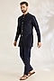 Featuring a navy blue kurta in silk base. It is paired with pants. Style it with mojaris for a festive occasion, wedding, or engagement ceremony, and complete the look with a statement brooch along with a sleek watch for a polished finish.