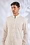 Featuring an off-white kurta in chanderi and cotton satin lycra base. It is paired with pants. Accentuate it with a pair of kolhapuri sandals for a festive occasion or pooja ceremony.