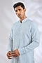 Featuring a powder blue kurta in chanderi and cotton satin lycra base. It is paired with pants. Accentuate it with a pair of kolhapuri sandals for a festive occasion or pooja ceremony.