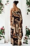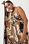 Featuring a black and brown one-shoulder maxi dress in natural crepe base with abstract print. It is paired with a bustier. Style with flats and a sling bag for effortless charm, Perfect for vacations, beach dinners, or casual outings.