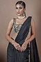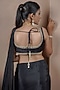 Featuring a black draped saree in organza base. It is paired with a handwork blouse. Accentuate it with polki jewellery and block heels for cocktail, sangeet or wedding ceremony.