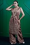 Featuring a brown jacket in hand woven jacquard kasab silk base with handwork. It is paired with a bustier and straight pants. Accentuate it with polki jewellery and block heels for festive occasions, sangeet or wedding ceremony.