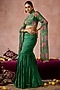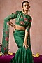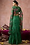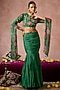 Featuring a green blouse in tabby base with slit sleeves and floral print. It is paired with a cotton silk gathered fish-cut skirt. Style it with heels and statement earrings for a graceful look, Perfect for festive lunches, mehendi, pujas, or family gatherings.