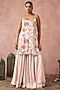 Featuring a nude A-line short kurta in cotton silk base with floral print. It is paired with embellished kalidar gharara pants. Style it with juttis and statement earrings for a graceful look, Perfect for festive lunches, pujas, or family gatherings.