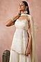 Featuring an off-white short kurta in cotton silk base with noodle straps and handwork. It is paired with gharara pants and a tabby choker dupatta. Style it with juttis and statement earrings for a graceful look, Perfect for festive lunches, pujas, or family gatherings.