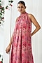 Featuring a pink midi in-cut dress in cotton silk base with floral print. Style with flats and a sling bag for effortless charm, Perfect for vacations, beach dinners, or casual outings.