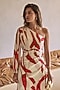Red Satin Leaf Printed One-Shoulder Ruffled Dress