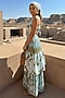 Sea Green Linen Polka Dot Printed Layered Maxi Dress