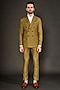 Featuring an olive green double breasted blazer in wool base. It is paired with pants. Perfect wear for formal events or reception ceremonies.