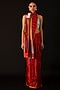 Featuring a red handwoven saree in silk base with color blocking. Accentuate it with dangler earrings and heels for a festive occasion, wedding or sangeet ceremony.