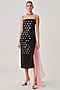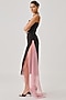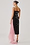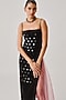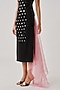 Featuring a black straight dress in japanese crepe base with a structured fall, a high-slit and mirror embroidery, including dusty pink organza drape. Accentuate it with statement earrings and stilettos for evening soirees, date nights or cocktail parties.