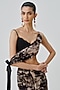 Featuring a black bralette in modal satin base with adjustable spaghetti strap, ajrakh handblock print, drape crossing and tie detail. Style it with a top, dangler earrings and heels for a cocktail or evening party.
