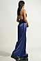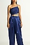 Featuring blue pleated pants in vegan mashru base with radiant finish, high-waist, and a wide belt. This contains only one piece.