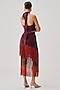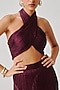 Featuring a burgundy top in modal satin base with a draped halter neck, elasticated back and hand ruch detail. Accentuate it with a skirt, statement earrings and stilettos for evening soirees, date nights or cocktail parties.