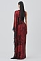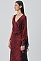 Featuring a crimson dress in modal satin base with handblock print and thigh-high slit. Style it with dangler earrings and sleek heels for a galas, high-end dinner party or evening party.
