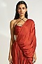 Deep Rust Modal Satin Asymmetrical Draped Gown With Top