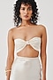 Featuring an ivory bandeau top in vegan mashru base. Accentuate it with pants, statement earrings and block heels for an evening look