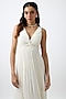 Featuring an ivory gathered gown in wrinkle chiffon and modal satin base with a v-neckline. Accentuate it with dangler earrings and heels for a party wear.