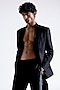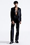 Featuring a black blazer in linen and vegan mashru base with a shawl collar. Perfect wear for cocktail parties.