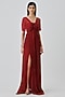 Featuring a scarlet red layered dress in chiffon and modal satin base with sheer sleeves, thigh-high slit and front-twist knot detail. Style it with dangler earrings and sleek heels for a galas, high-end dinner party, cocktail or evening party.