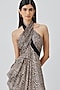 Featuring a warm beige dress in modal satin base with handruched bodice, handblock print and halter neck. Style it with dangler earrings and sleek heels for a galas, high-end dinner party or evening party.