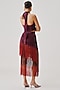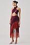 Featuring a wine and rust ombre midi skirt in modal satin base with a ruched waistband and layered fringe detail. Accentuate it with a top, statement earrings and stilettos for evening soirees, date nights or cocktail parties.