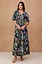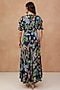 Featuring a blue floral maxi dress in natural crepe base with puff sleeves and a v-neckline. Accentuate it with hoop earrings and block heels for brunches, garden parties or evening outings.