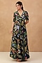 Featuring a blue dress in natural crepe base with a v-neck and hand embroidered borders. Accentuate it with hoop earrings and block heels for brunches, garden parties or evening outings.