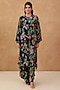 Featuring a blue kurta in natural crepe base with gathered neckline and scalloped beads detail. It is paired with tulip pants. Accentuate it with statement earrings and heels for festive gatherings.