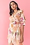 Featuring a peach wrap dress in organic cotton base with daphne print and attached ruffle detail. Style it with hoop earrings and heels for brunch or casual wear.